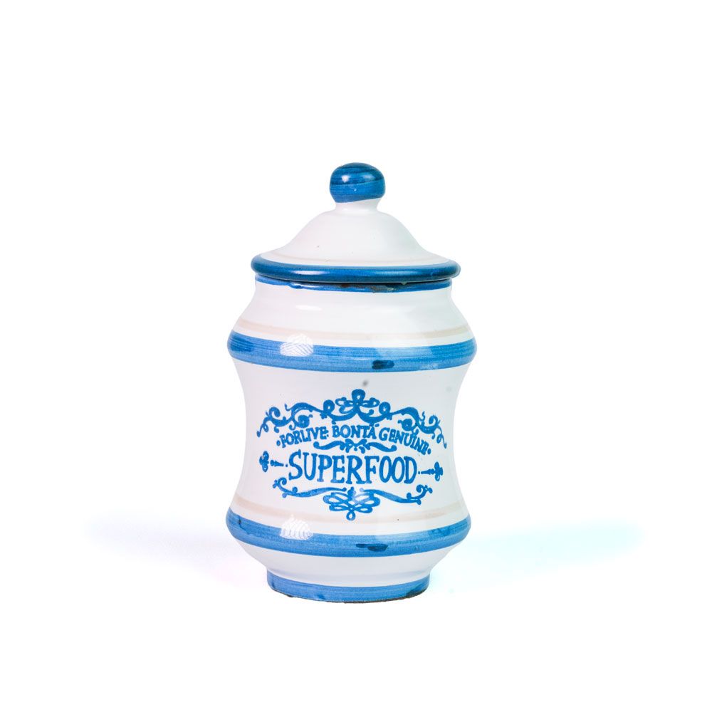 Le giare Forlive sono barattoli artigianali, interamente prodotti a mano da maestri ceramisti italiani, certificate per uso alimentare, le decorazioni ed i colori sono naturali al 100%.
