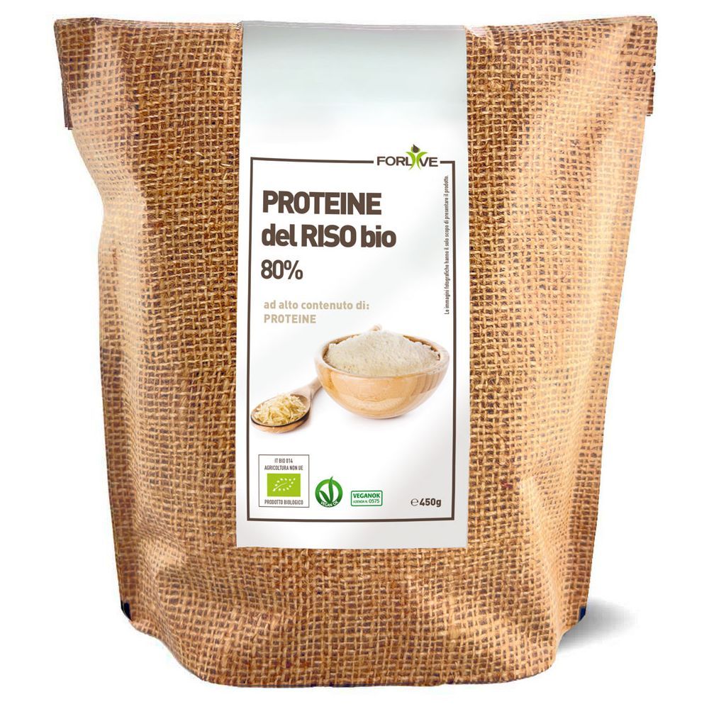 Le Proteine del RISO Bio Forlivesono presenti in confezioni da 450 gr.