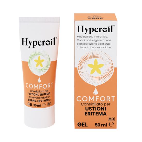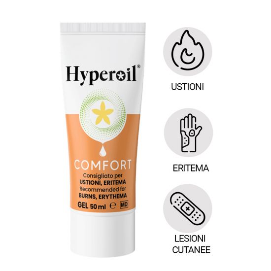 Grazie al suo effetto barriera, Hyperoil® COMFORT Gel coadiuva la rigenerazione e la riparazione tessutale cutanea in caso di ustioni ed eritemi.